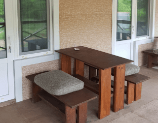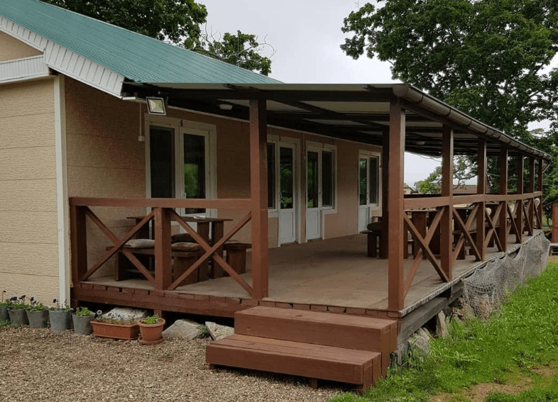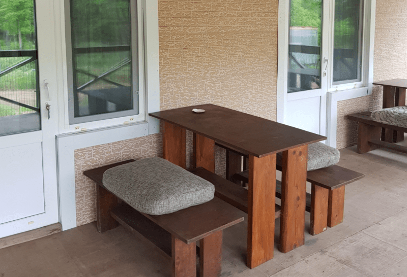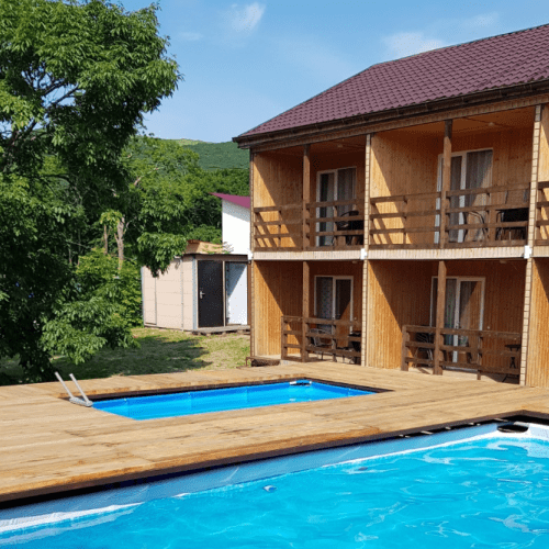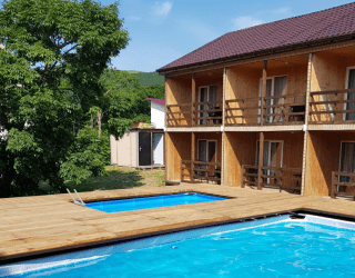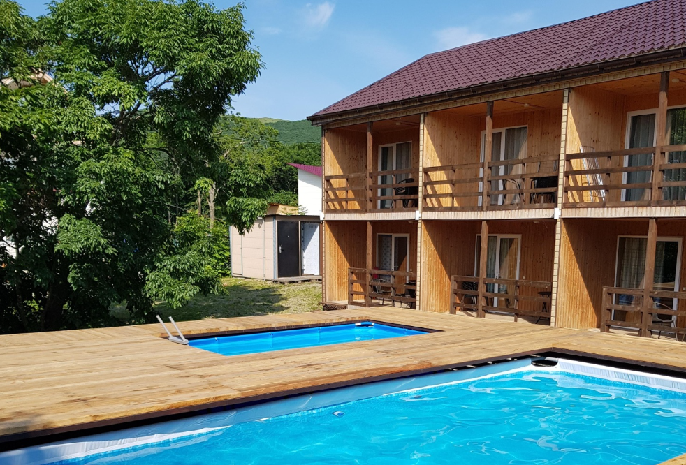 Комплекс занимает благоустроенную территорию в 10–12 минут ходьбы от пляжа. В распоряжении отдыхающих два гостевых двухэтажных корпуса. Жилой фонд предлагает номера разных категорий: в первом комфорт-корпусе находятся номера с кухней, предусмотрена персональная ванная комната, установлен кондиционер. Во втором корпусе – бюджетные номера с санузлом в отдельном здании. Перед корпусами имеются веранды со столиками и скамейками.