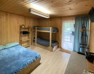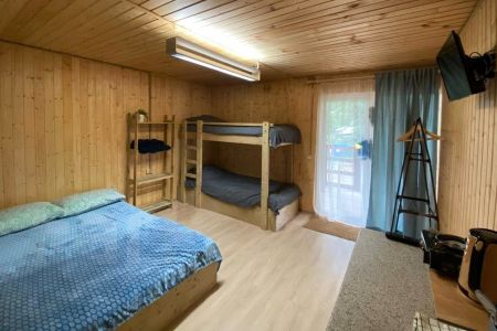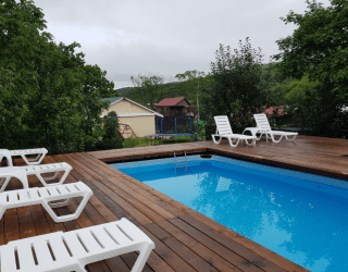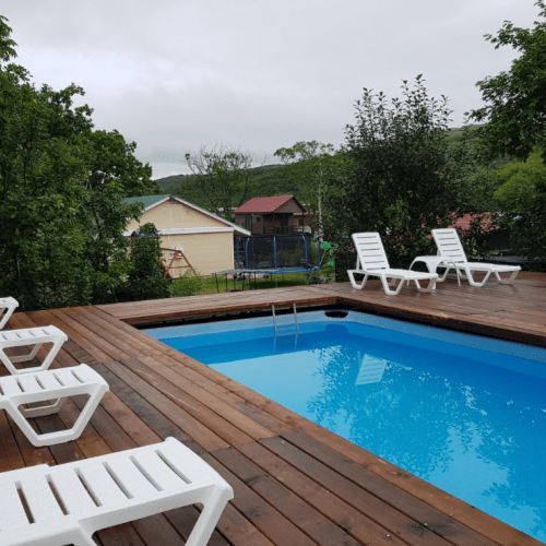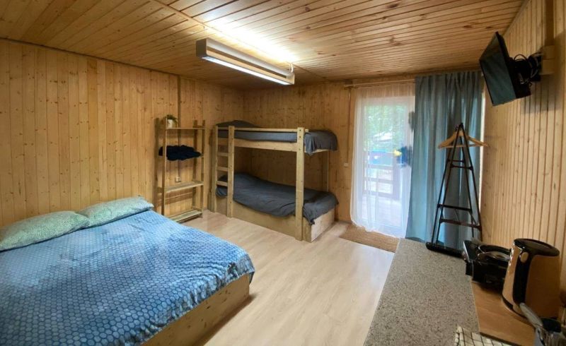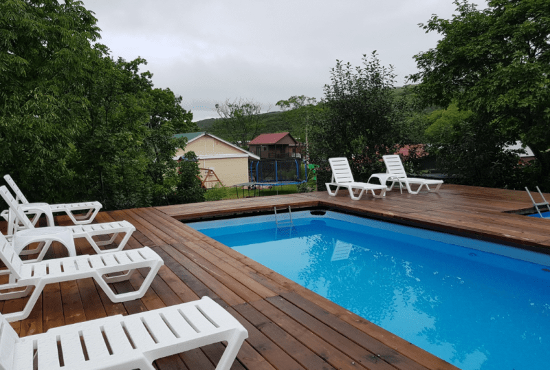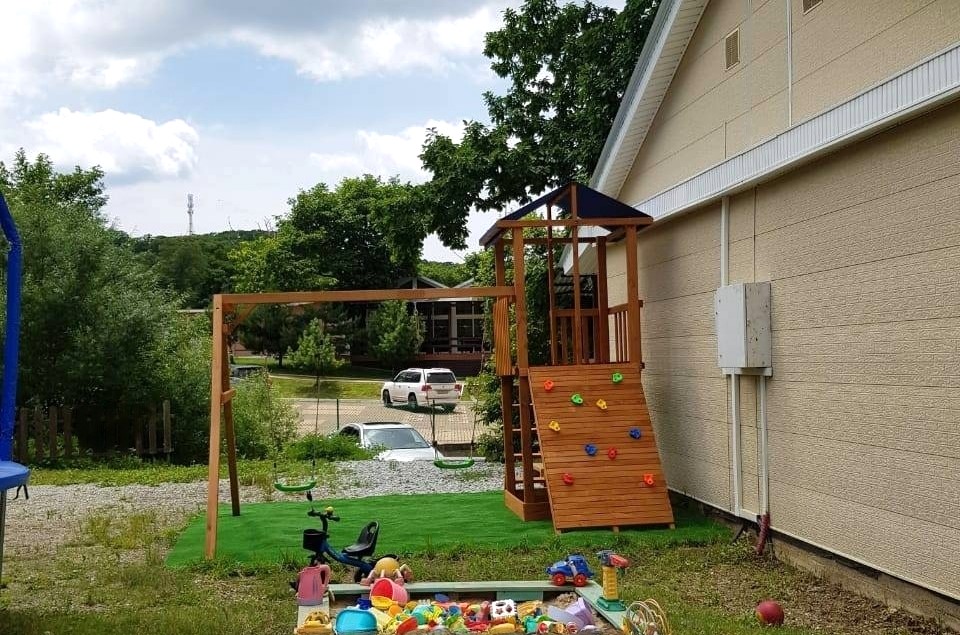 На территории базы отдыха оборудована общая кухня, оснащенная всей необходимой посудой. К услугам гостей несколько барбекю-зон с мангалами, есть открытый бассейн. Дети смогут весело провести время на игровой площадке с качелями, батутом, песочницей. Для автовладельцев организована парковка.